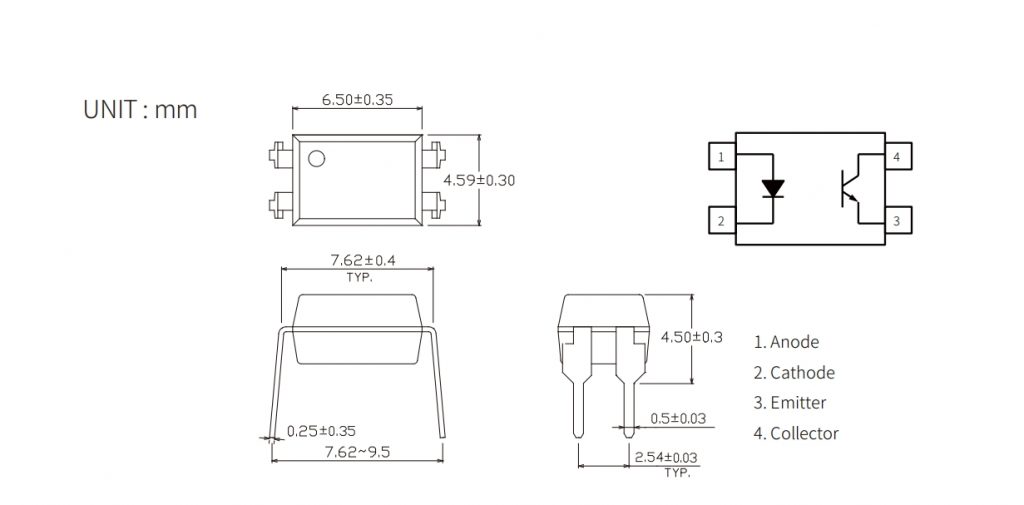 | KL817HB | DIP4 | 6.5x4.59x3.5 | 1.2 | 80 | 0.35 | 5 | 130~260 | 6 | 8 | - | - | -30 | +125 | 5000 |