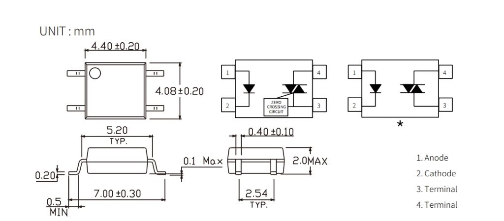 | Product | Package | size(LxWxHmm) | VF(V) | VDRM(Max) (V) | VTM(V) | VINH(V) | IT (rms)(mA) | IFT(mA) | Topr (Min) (degC) | Topr (Max) (degC) | Viso (Vrms) |