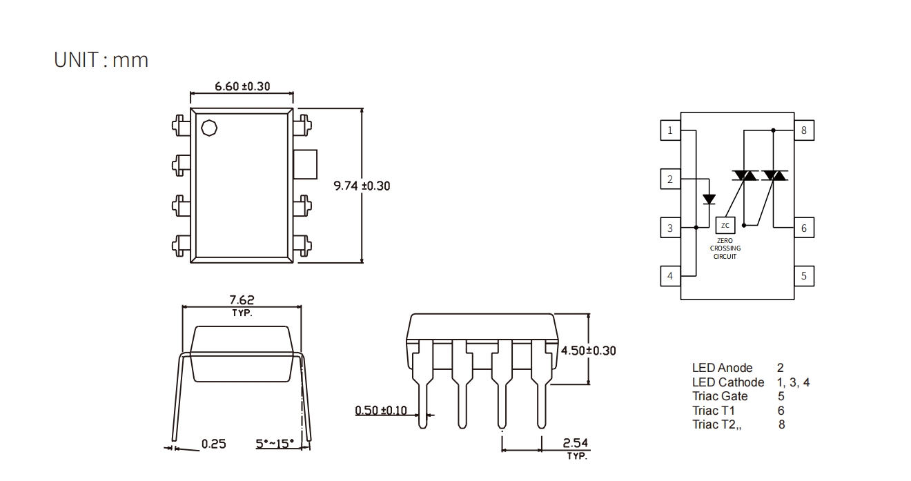 | Product | Package | size(LxWxHmm) | VF(V) | VDRM(Max) (V) | VTM(V) | VINH(V) | IT (rms)(mA) | IFT(mA) | Topr (Min) (degC) | Topr (Max) (degC) | Viso (Vrms) |